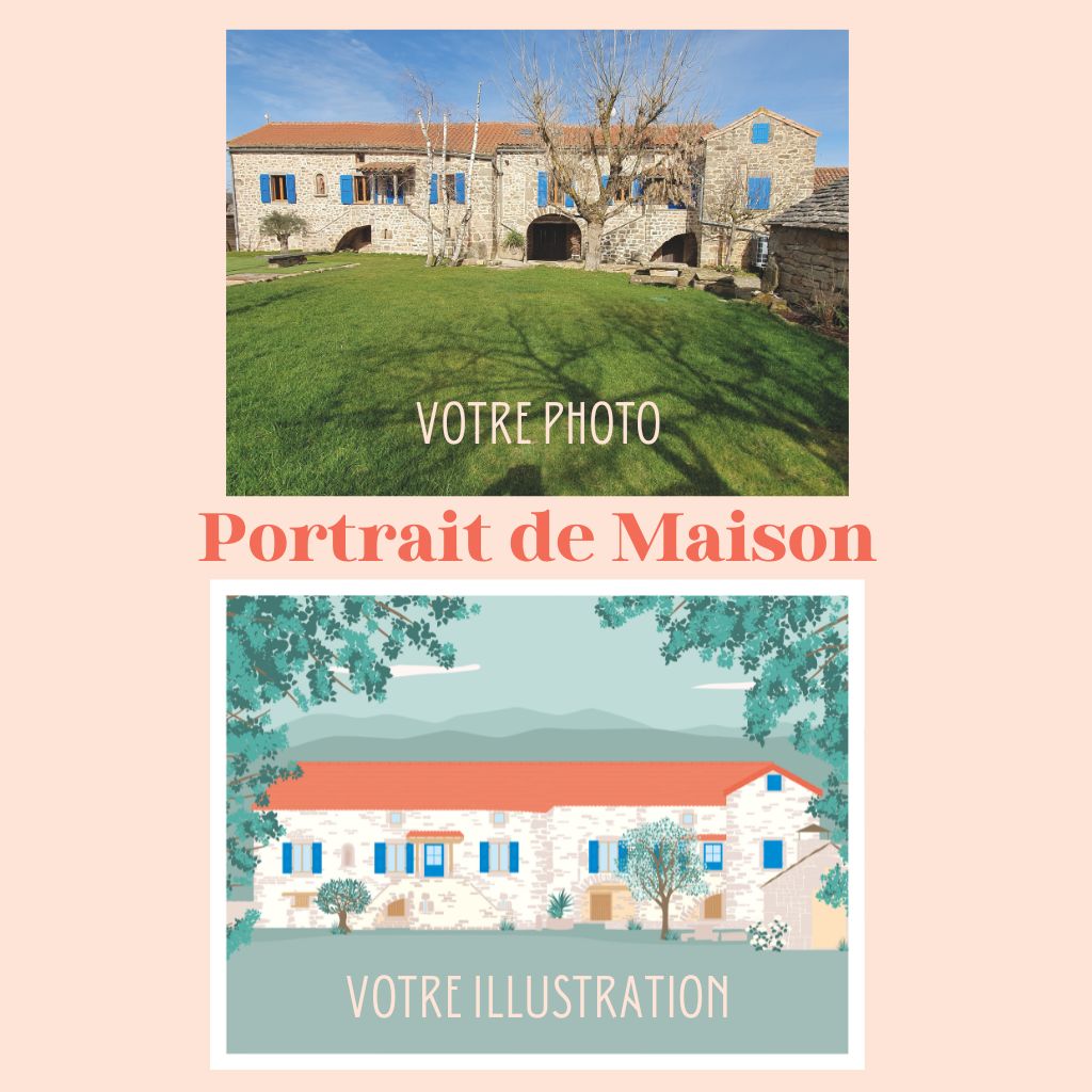 Faites illustrer votre maison ou celle d’un proche dans un style doux, coloré et poétique.