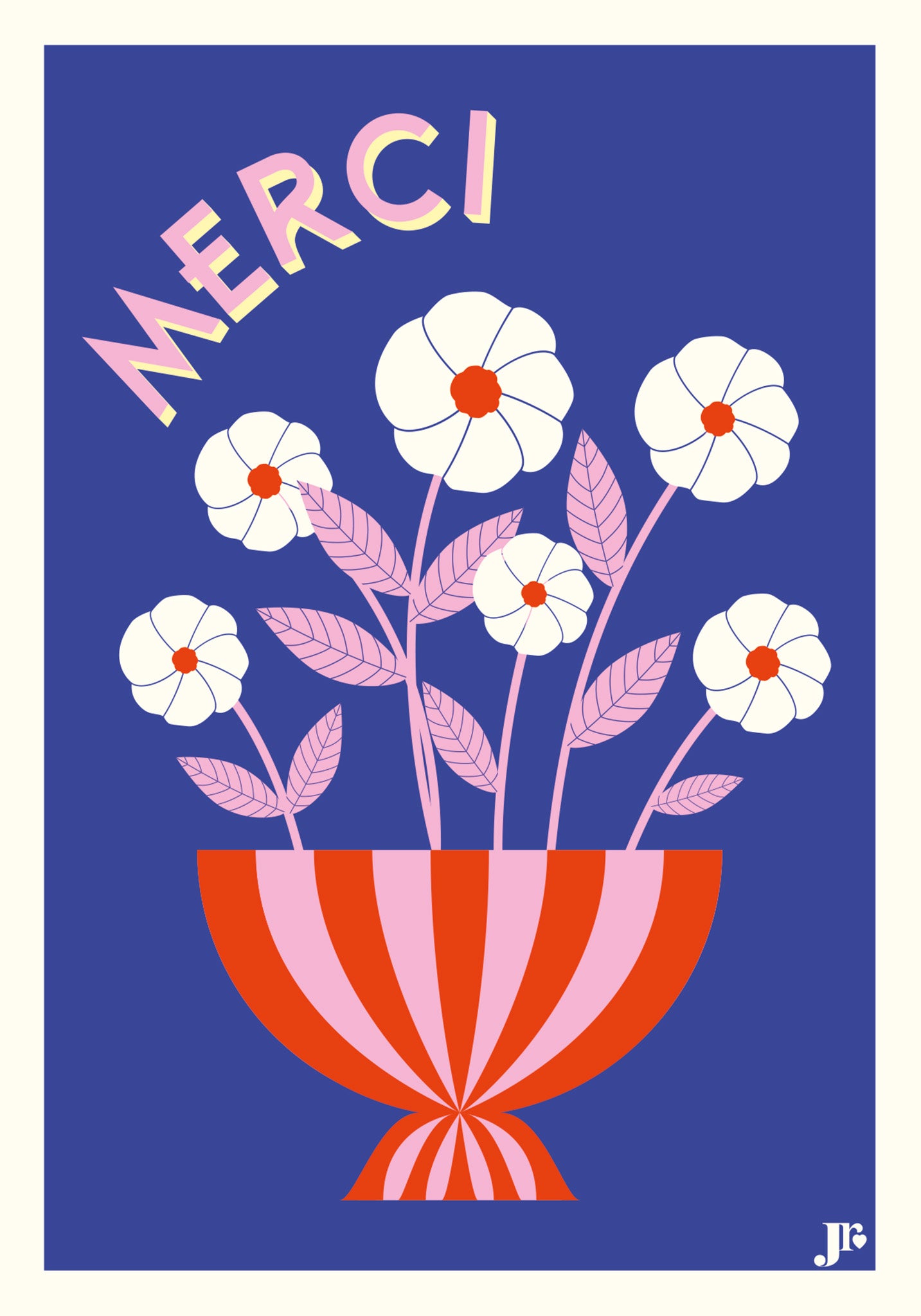 Un grand MERCI en fleurs et en couleurs “MERCI, Les Fleurs” est une carte postale...