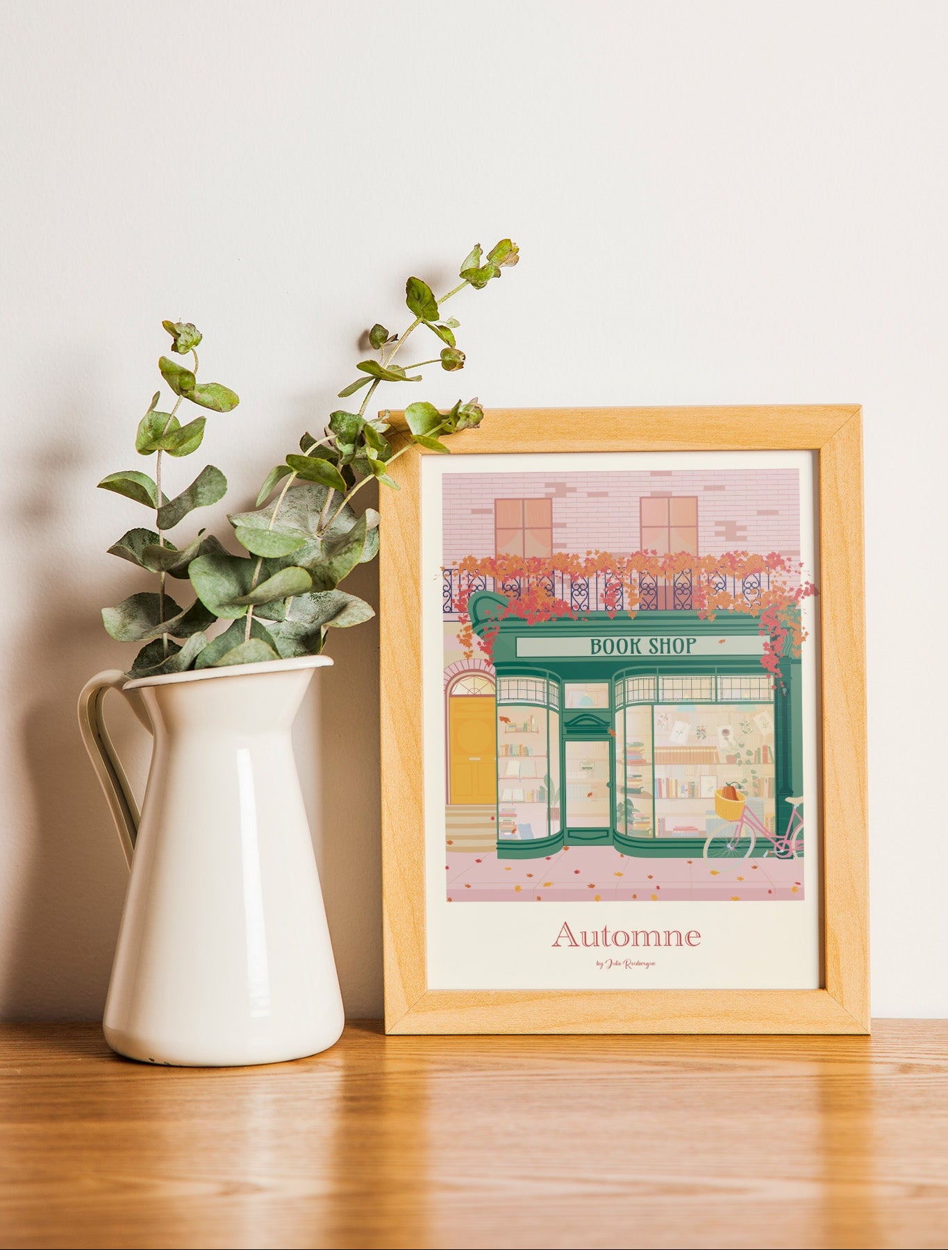 Carte Postale BOUTIQUE LITTÉRAIRE – Automne en Ville Descriptif de la Scène Cette carte postale...