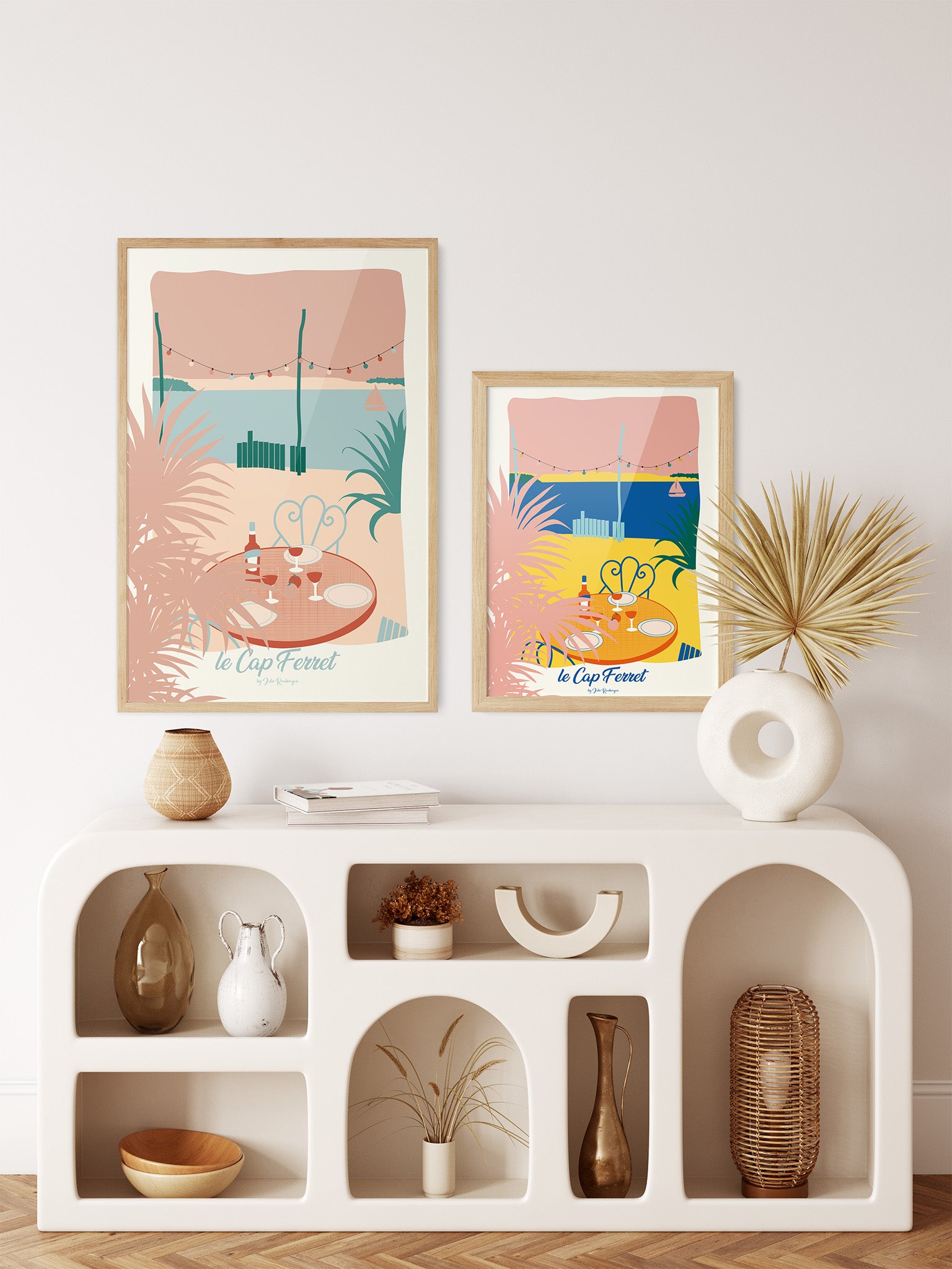 Toutes nos illustrations murales du Bassin d’Arcachon sont imaginées et imprimées à Bordeaux, sur papier haut de gamme. Elles se déclinent en deux formats (30x40 cm et 50x70 cm), parfaits pour composer un mur de cadres ou offrir un souvenir poétique de vacances.